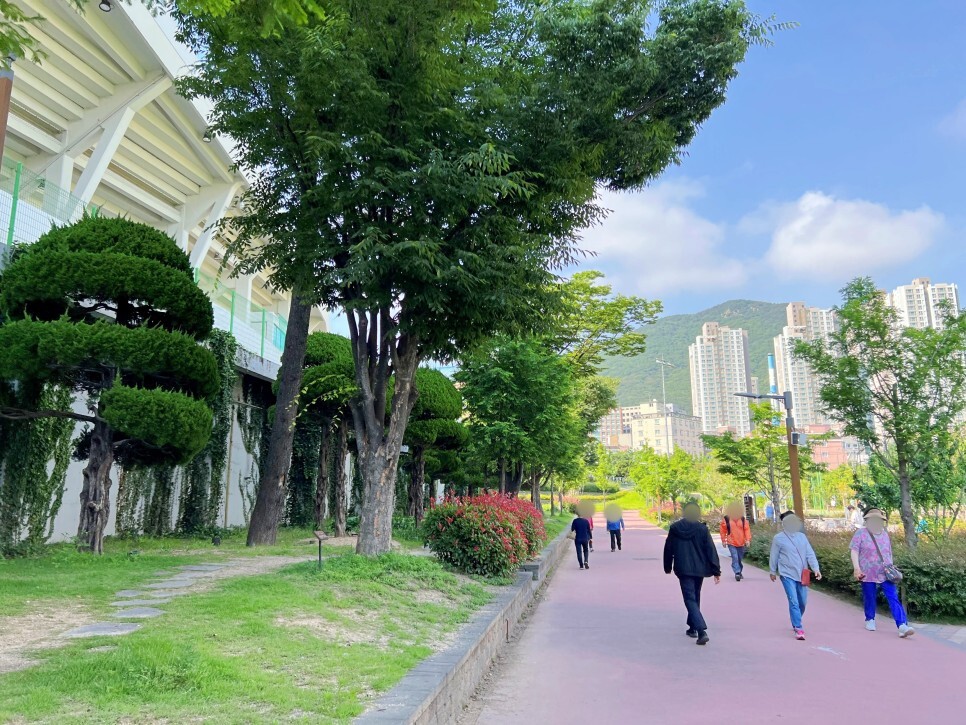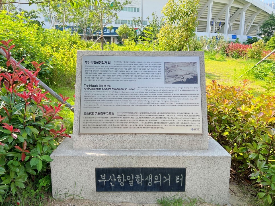 구덕운동장은 1928년 준공되어 꽤 오랜 시간 시민의 공간이 되고 있는데요. 1940년 노다이사건이라 부르는 항일학생운동이 일어나기도 했어요. 공원 한가운데에 부산항일학생의거 터라는 기념비가 있으니 역사의 흔적을 돌아보는 것도 괜찮습니다.