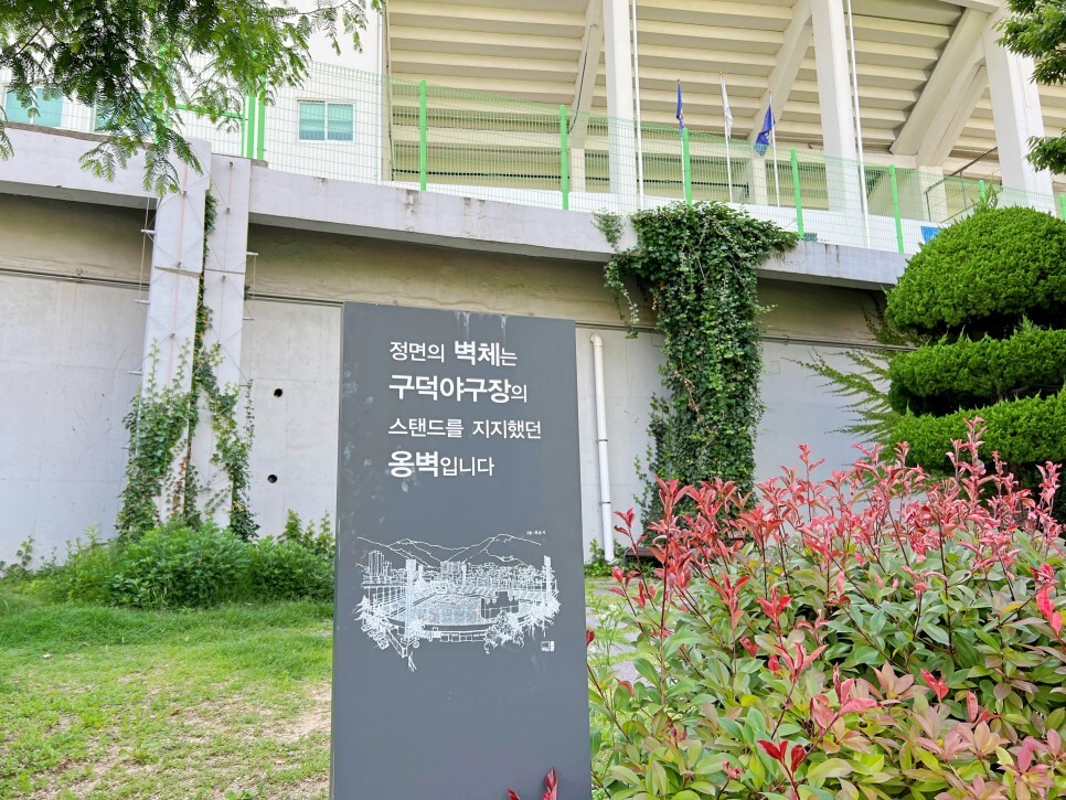 구덕야구장이 있을 때 옹벽이었던 흔적을 만날 수 있습니다. 저는 야구부가 있던 고등학교 출신이라 구덕야구장에 응원하러 참 자주 왔던 기억입니다.