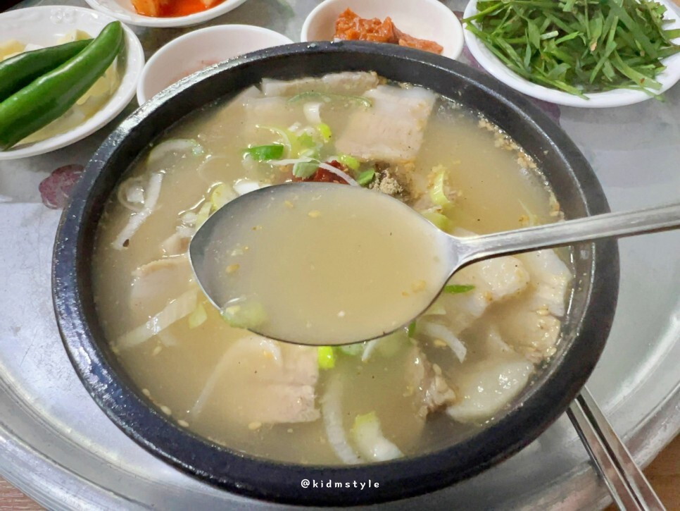 딱 봐도 맛있어 보이죠? 저만의 생각인가요? 사실 이 집은 국밥 초심자들과 왔을 때 호불호가 좀 갈리긴 했어요. 극소수이긴 했지만요. 아무래도 돼지국밥 마니아들을 위한 국밥이라는 생각이 듭니다.