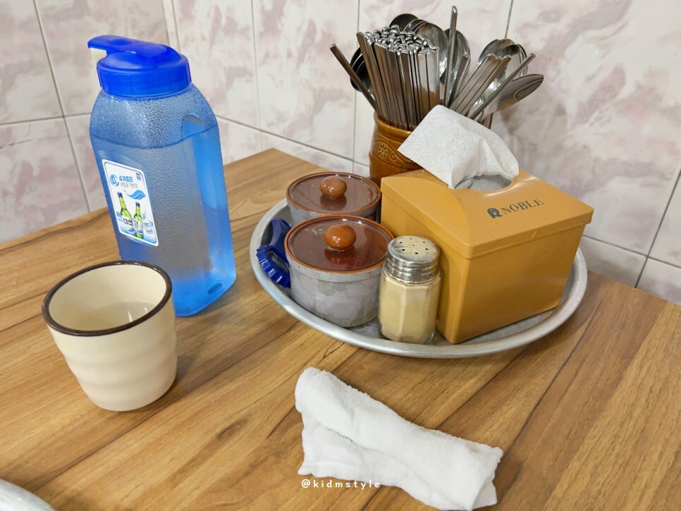 고춧가루, 소금, 후추는 테이블에 있으니 취향껏 뿌려 드시면 되고요.
