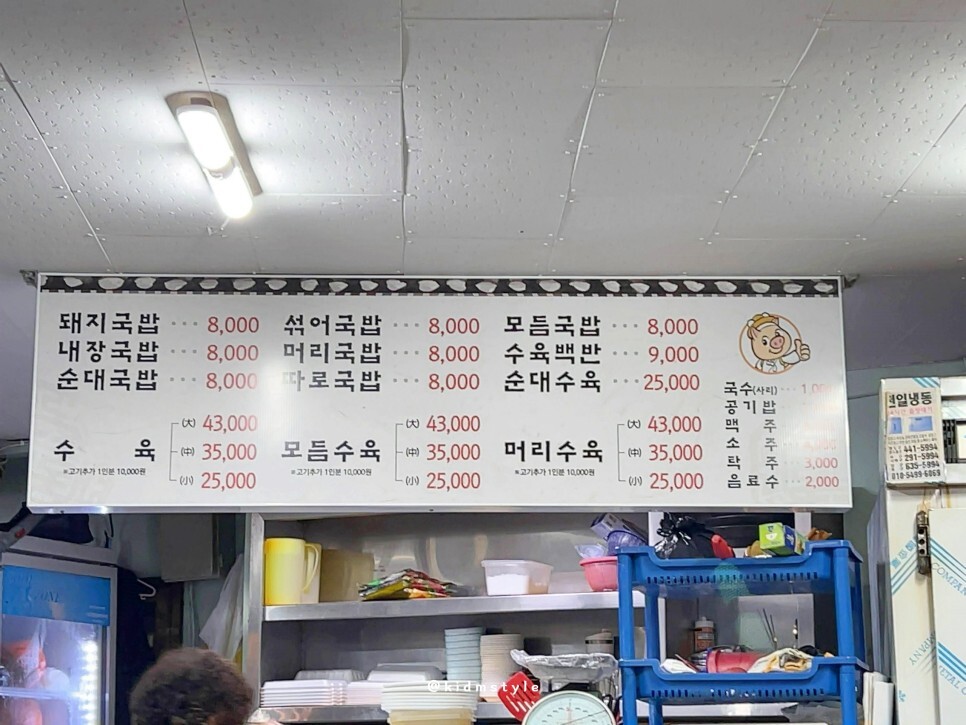 원산지 표시판입니다. 모든 메뉴는 국내산을 사용해요. 돼지국밥 8,000원 가격 좋죠? 이 집 처음에 왔을 때 국밥 한 그릇에 3,000원인가 주고 먹었는데 세월이 참 빠릅니다.