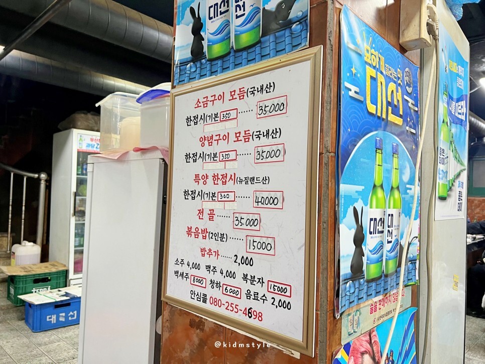 메뉴판입니다. 백화보다 상대적으로 저렴해요. 그리고 여기가 연기도 덜하고 좀 쾌적하게 맛볼 수 있다고 해야 할까요? 저도 예전에는 백화에 자주 갔었는데 요즘은 대광 등 다른 곳을 골라서 맛봅니다.