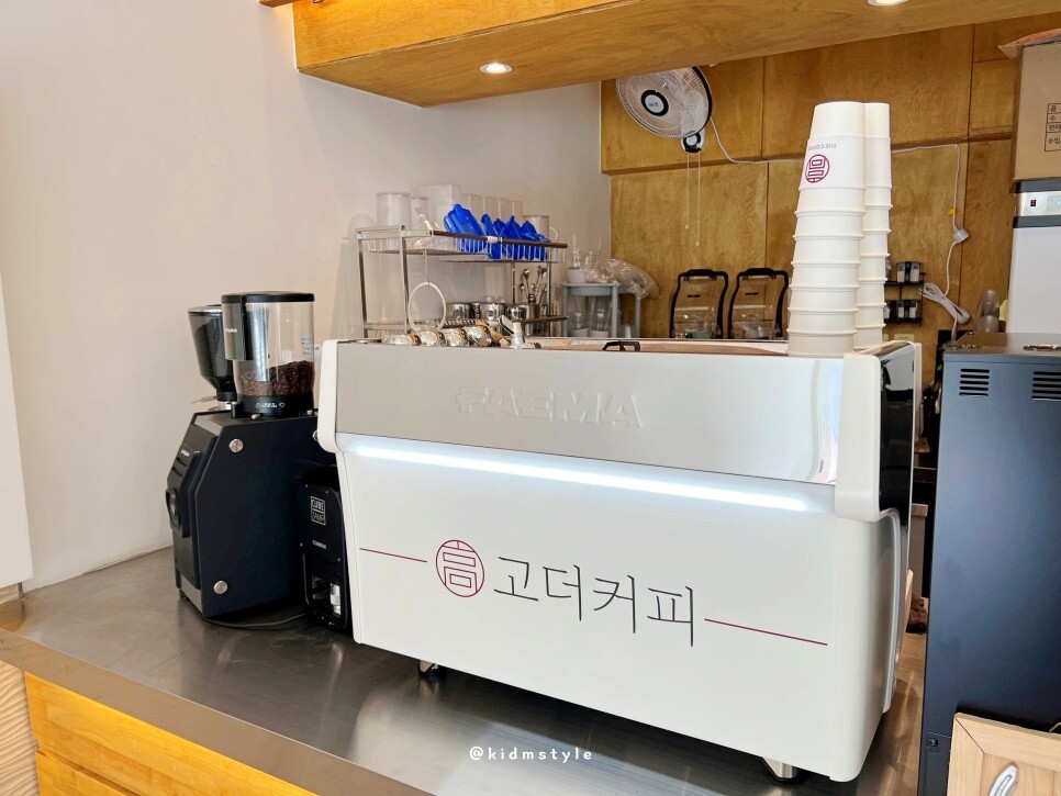 커피 머신에 高고더커피가 딱 적혀있네요. 매장이 깔끔하고 청결한 인상을 줍니다.
