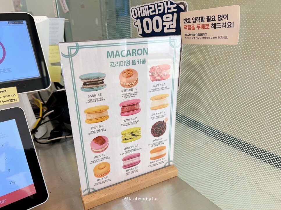 음료 메뉴뿐만 아니라 뚱카롱도 있네요. 커피와 함께 맛보면 정말 맛있죠.