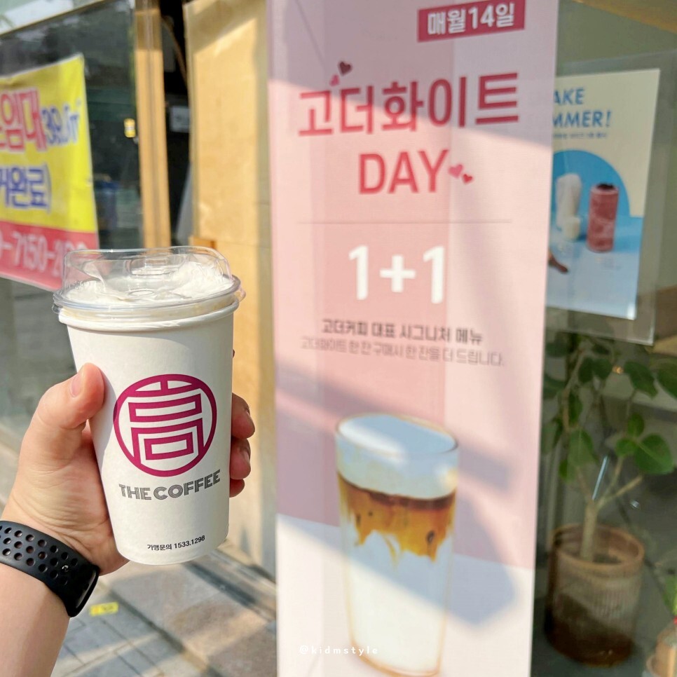 고더화이트는 고더커피의 시그니처 메뉴인데요. 매월 14일마다 1+1 행사를 하니까 기억하셨다가 드시면 괜찮을 것 같아요. 이 배너를 보니 고더화이트가 맛보고 싶어지는데요.