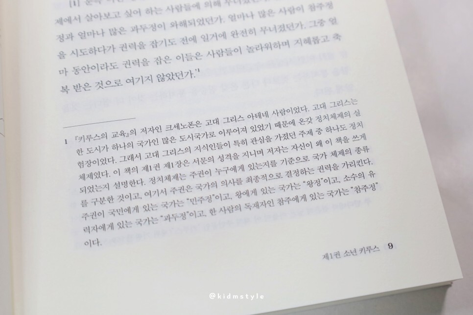 키로파에디아라고도 하죠. 리더의 성품과 태도, 자기관리, 인간관계, 조직경영 등 동서고금을 초월한 참된 지도자의 덕목을 모두 담아낸 책이라는 평가가 늘 따릅니다.