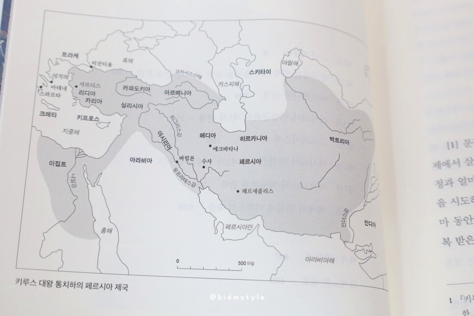 당시 이야기를 전해주는 키루스 대왕 통치하의 페르시아 제국 지도도 엄청납니다.