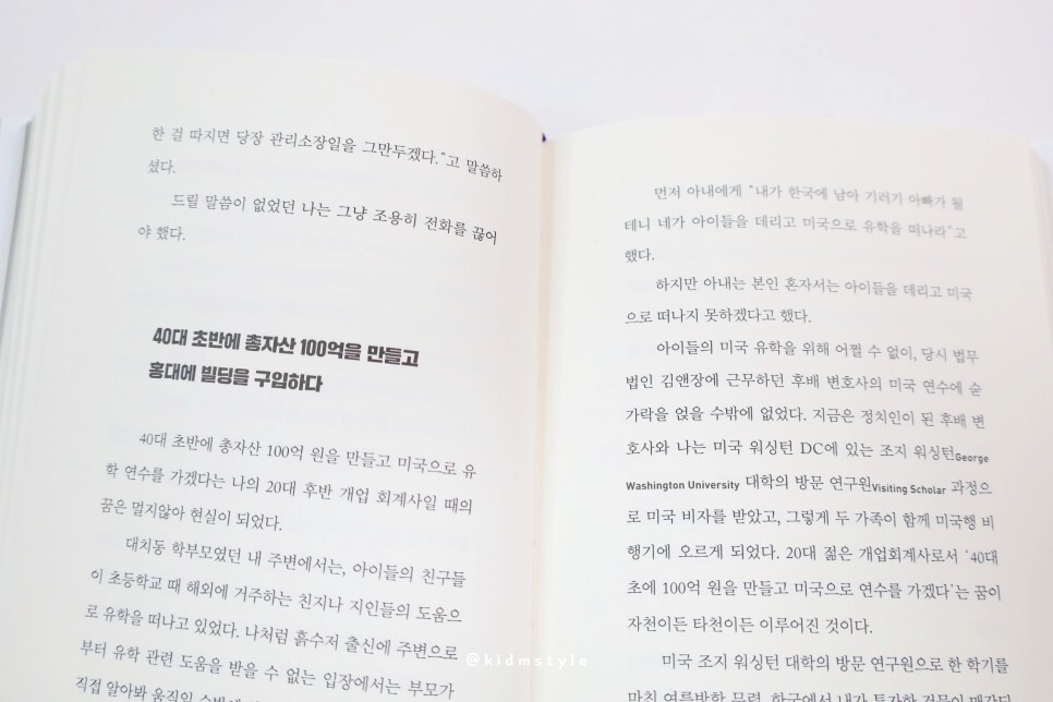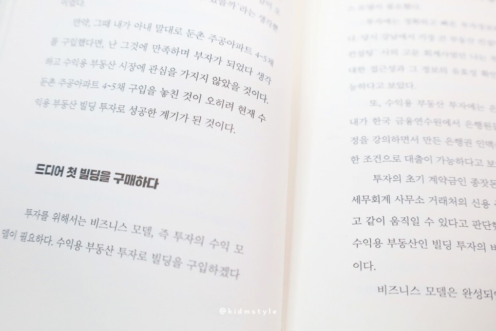 이 책은 부동산 투자로 100억 아니 1000억 원 대의 부를 이룬 작가의 이야기를 담고 있습니다. 시중에 이런 내용의 책이 많잖아요. 저도 많이 읽어봤거든요. 근데 대부분 식상한 이야기가 전부였는데 이 책은 조금 달랐습니다.