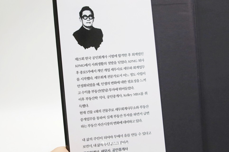 저자 김형민 님의 약력이 소개됩니다. 상당히 똑똑한 분인 거 같아요. 공인회계사, 세무사, 그리고 공인중개사까지 대단합니다. 물론 한 번에 취득한 건 아니에요. 책을 읽어보니 그 과정이 여실히 나타납니다.