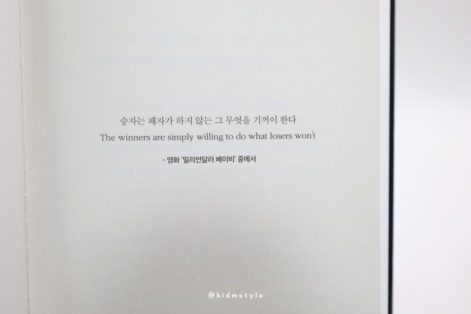 참 와닿는 문구에요. '승자는 패자가 하지 않는 그 무엇을 기꺼이 한다' 이 말 너무 좋지 않나요?
