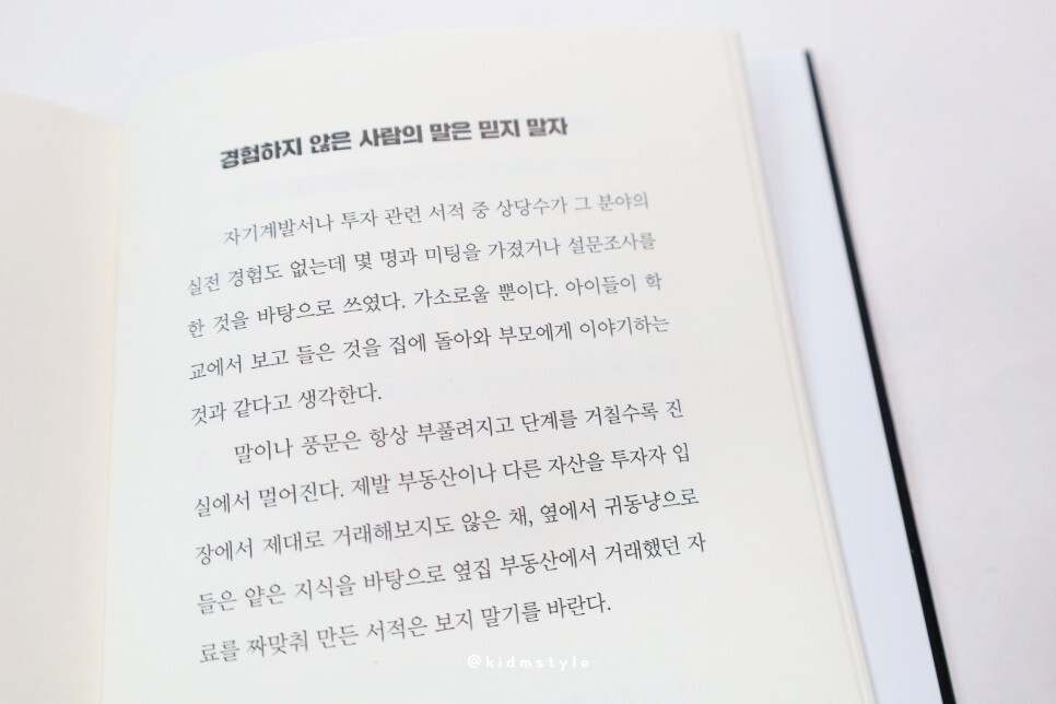 저 역시 사회 초년생 때 사수의 영향을 받아 부동산 투자에 대해 심도 있게 공부한 적이 있습니다. 공인중개사 자격증 역시 취득할 목적을 여전히 가지고 있고요. 그래서 그런지 책의 내용이 꽤 재미있고 현실감 있게 다가온 건 사실입니다.