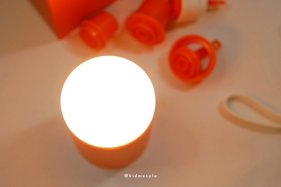 랜턴 기능도 사용할 수 있는데요. 동그란 버튼이 스위치입니다. 두 번 누르면 공기 주입, 밑면의 뚜껑을 열고 두 번 누르면 공기 배출, 3초간 누르고 있으면 랜턴이 켜집니다. 그리고 랜턴 모드에서 버튼을 세 번 누르면 조난 신호등이 켜집니다.