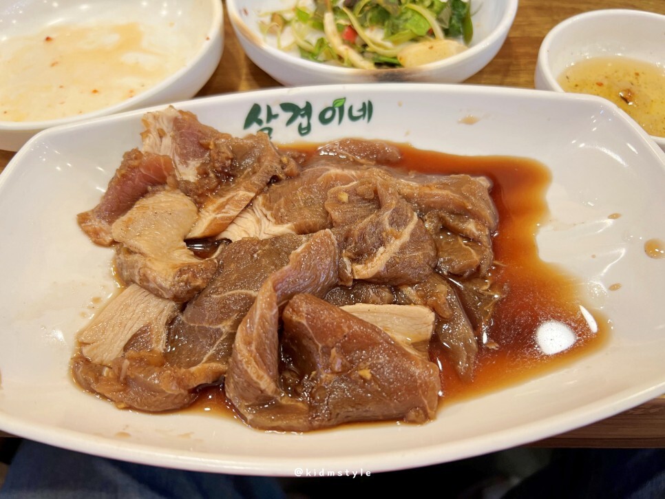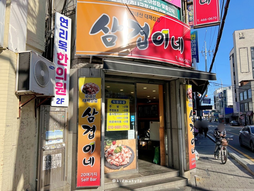 진역에 맛집이 많은데요. 오늘 소개하는 삼겹이네 수정점은 이 자리에서 꽤 오래 영업을 하고 있습니다. 저렴한 가격에 부담 없는 메뉴라서 다양한 연령대의 손님이 찾는 곳이기도 합니다. 늦은 오후에 찾았습니다.
