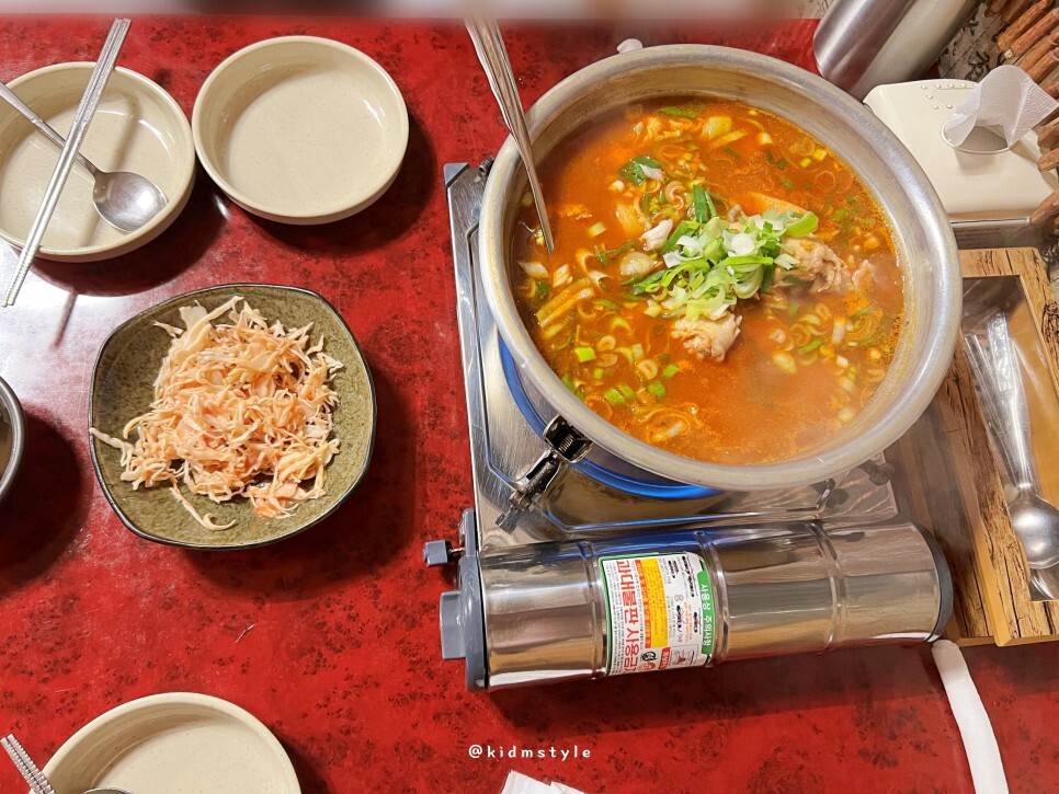 주방에서 거의 다 끓여서 나오기 때문에 한소끔 끓이고 바로 맛보면 됩니다. 하지만 조금 더 졸여서 먹기로 합니다.