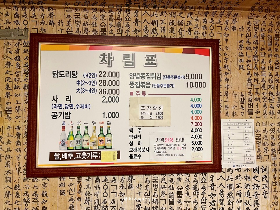 닭도리탕이 메인이고 사이드로 양념똥집튀김도 인기가 많습니다. 닭도리탕 중자와 대선 한 병 주문해 봅니다. 물가가 올라서 그런지 가격이 꽤 많이 올랐네요.