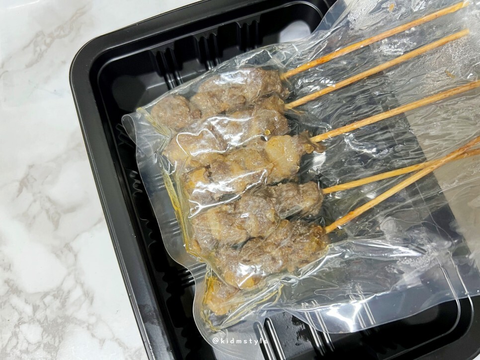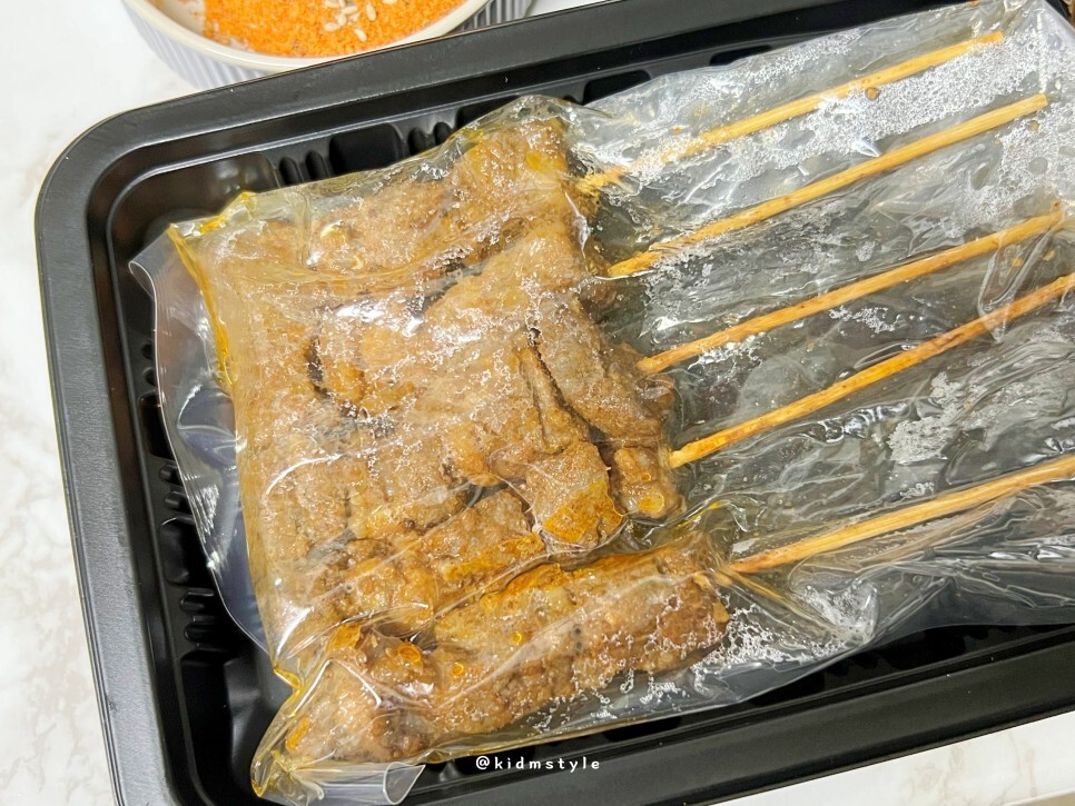 총 5개의 양꼬치가 들어가 있네요. 소주 한잔하기 딱 좋겠습니다. 참고로 1팩에 7,900원에 구입할 수 있습니다.