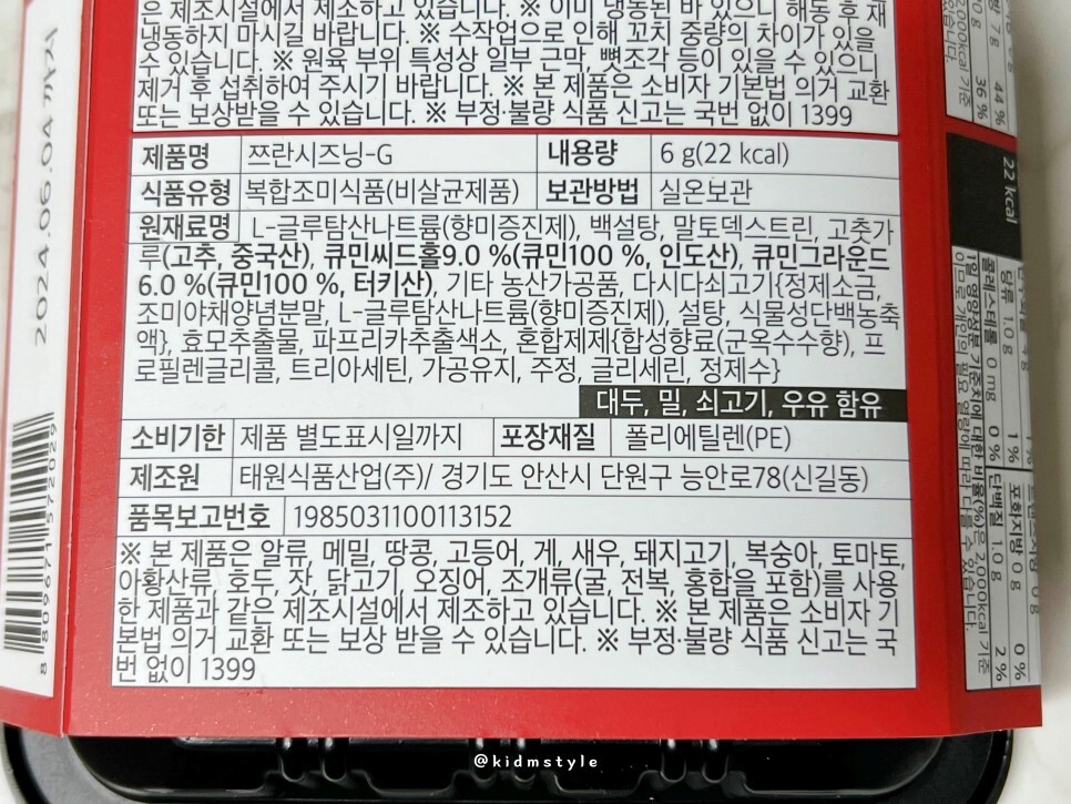 쯔란시즈닝이 반갑네요. 쯔란시즈닝은 빼놓고 전자레인지에 돌려야 합니다.