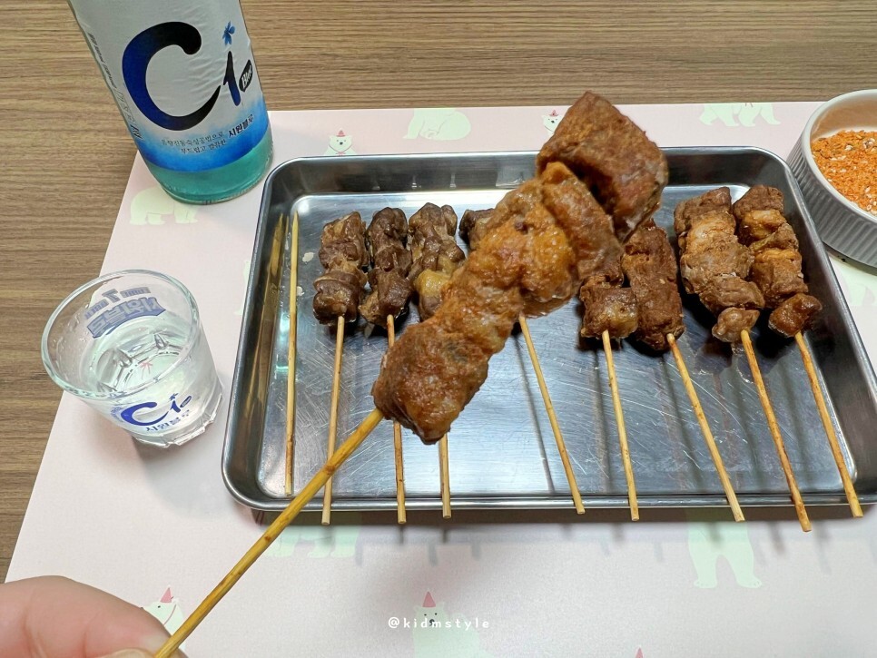 조리가 끝났습니다. 집에서 간편하게 양꼬치를 맛볼 수 있다니 좋네요.