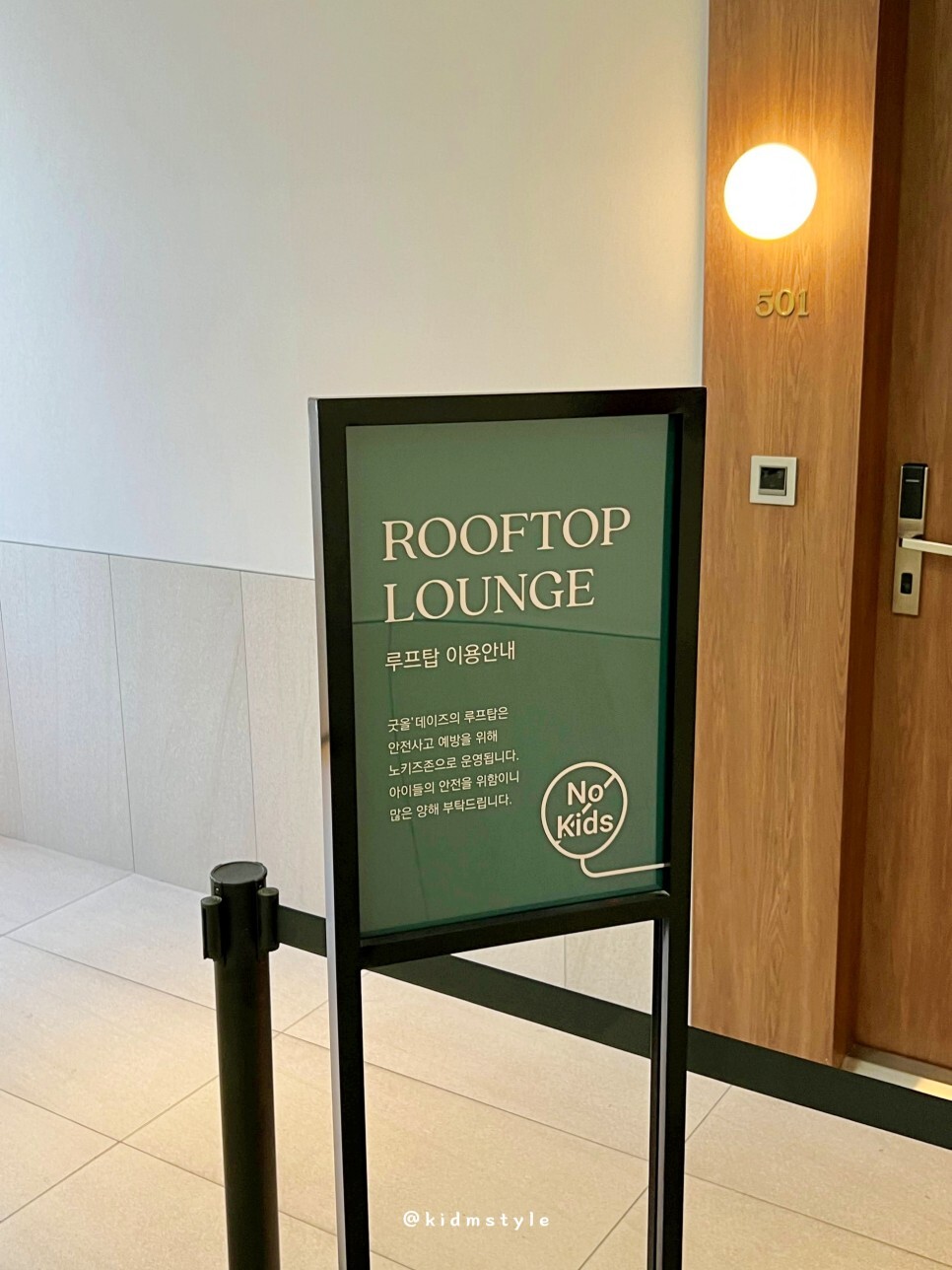 루프탑을 안 가볼 수가 없는데요. 안전 예방 차원으로 노키즈존으로 운영합니다.