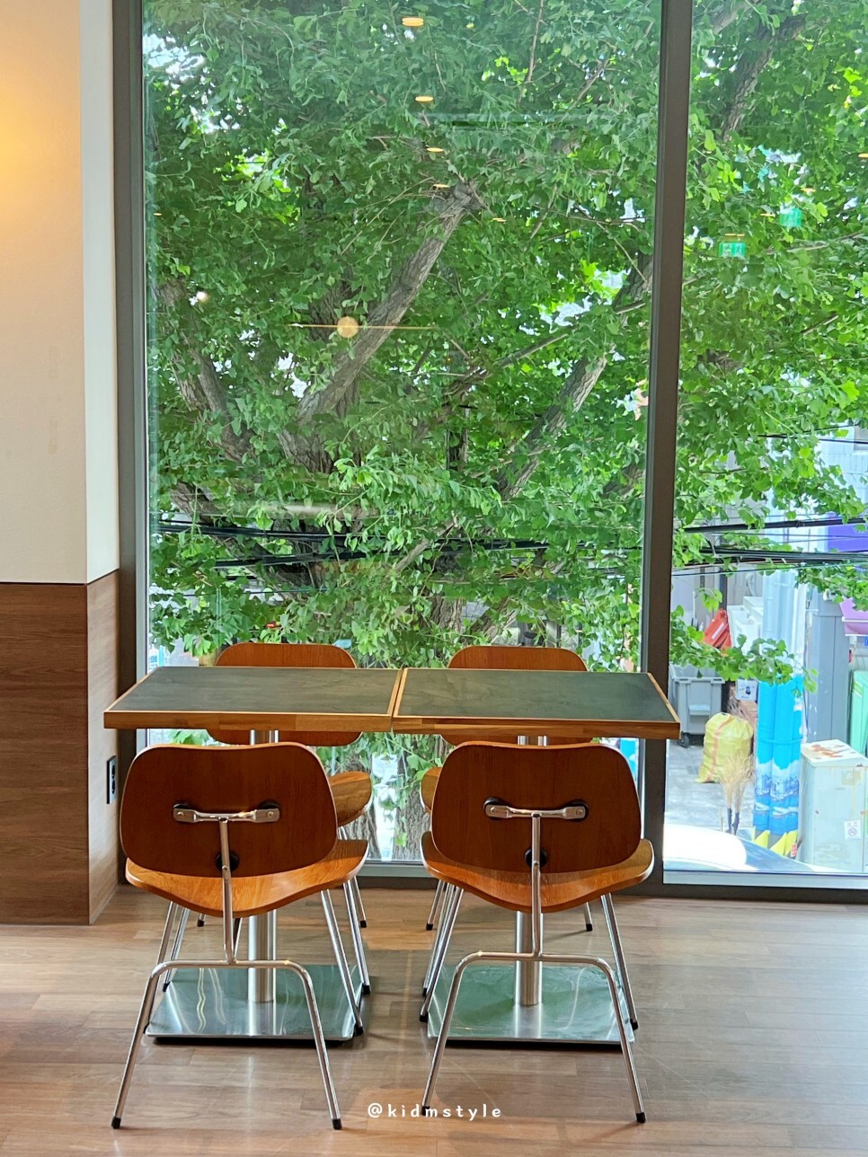 창밖의 키 큰 나무를 바라보며 커피 한잔 참 좋을 것 같아요.