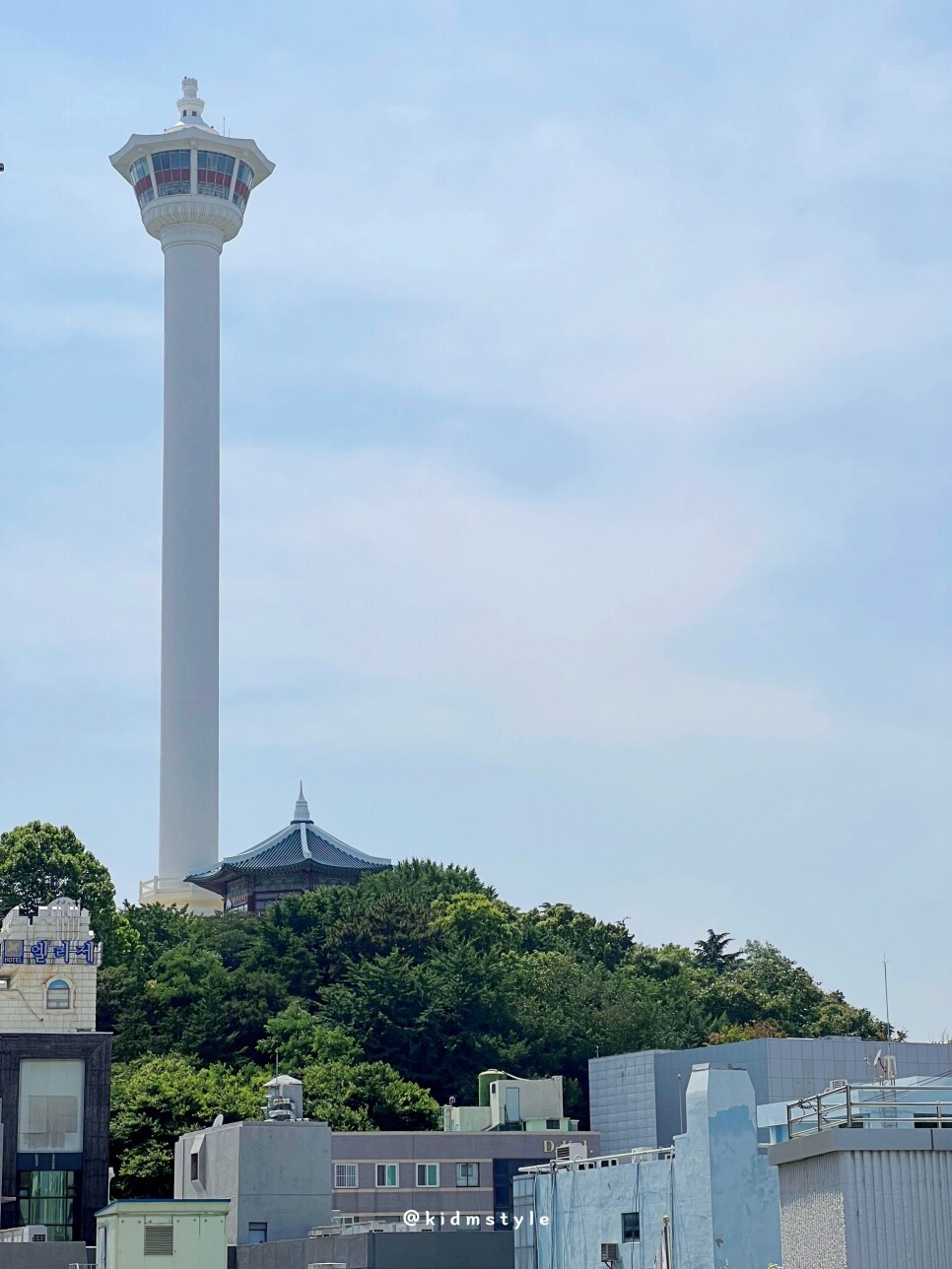 루프탑에서 바라본 원도심 부산의 상징, 용두산공원 부산 다이아몬드 타워입니다.