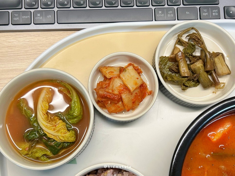 김치도 하나 올려서 먹으니 육개장맛집 따로 갈 필요가 없네요. 집에서 편안하게 간편하게 한상 차려서 먹는 게 제일 편합니다.