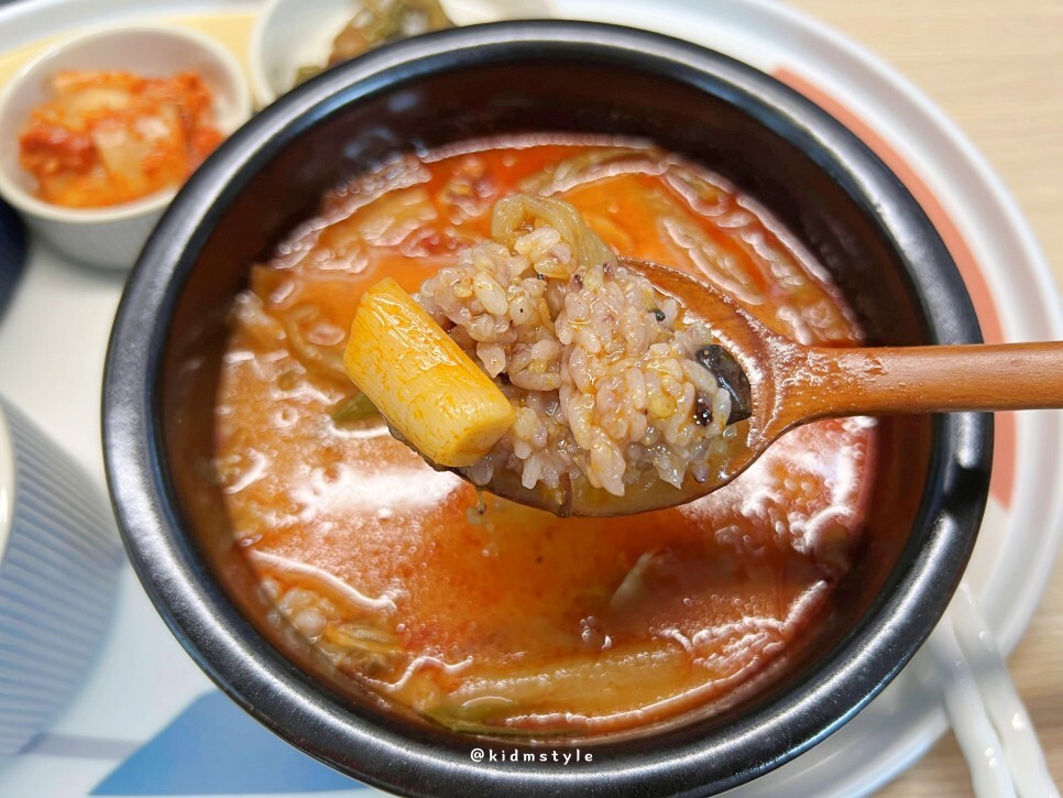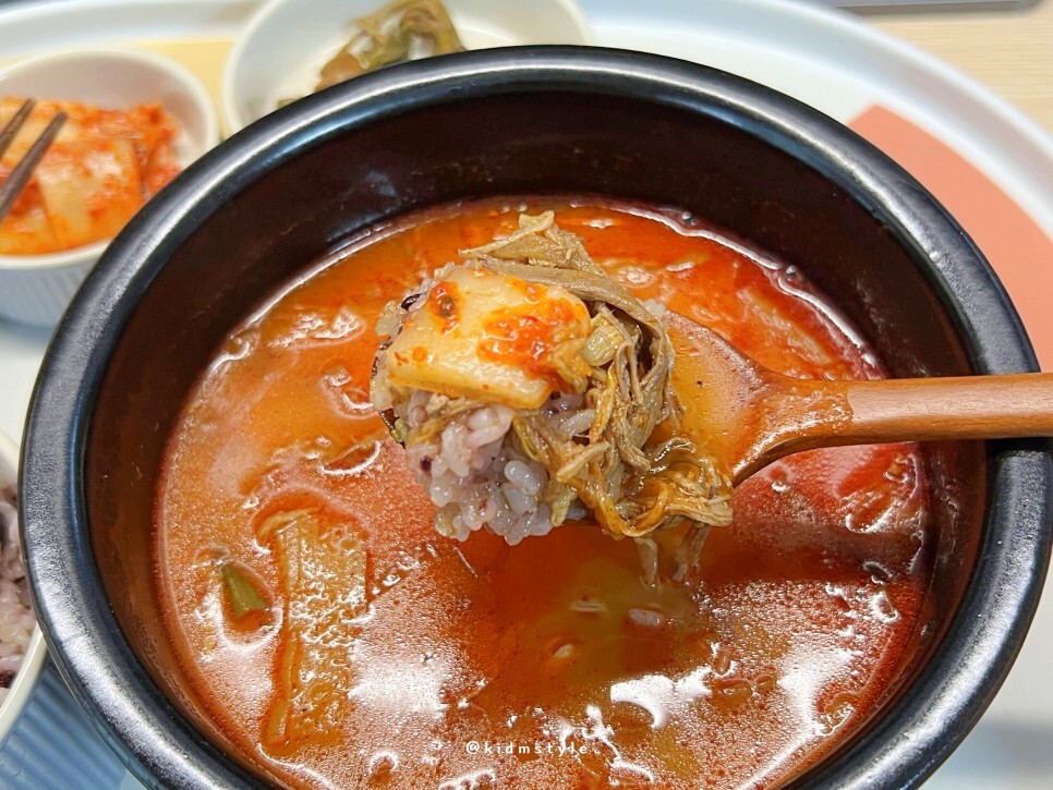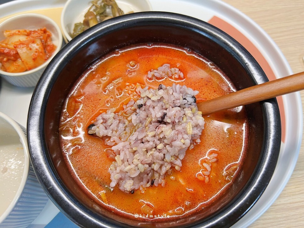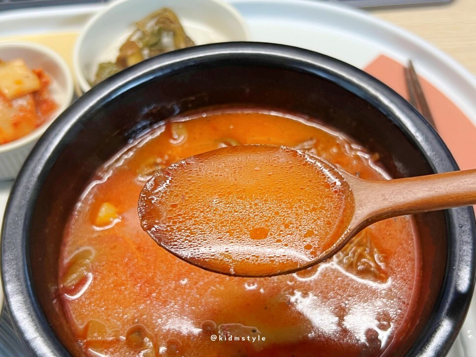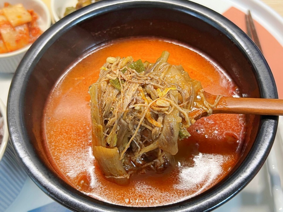 국물부터 맛봅니다. 후기를 둘러봤을 때 스트레스 확 날려줄 만한 칼칼한 매운맛이라는 후기가 많았거든요. 국물이 자극적일 것 같았는데 막상 먹어보니 의외로 담백함이 올라오네요. 제가 매운 것을 잘 먹어서 제 입에는 많이 맵지 않고 딱 적당하네요. 좋습니다.