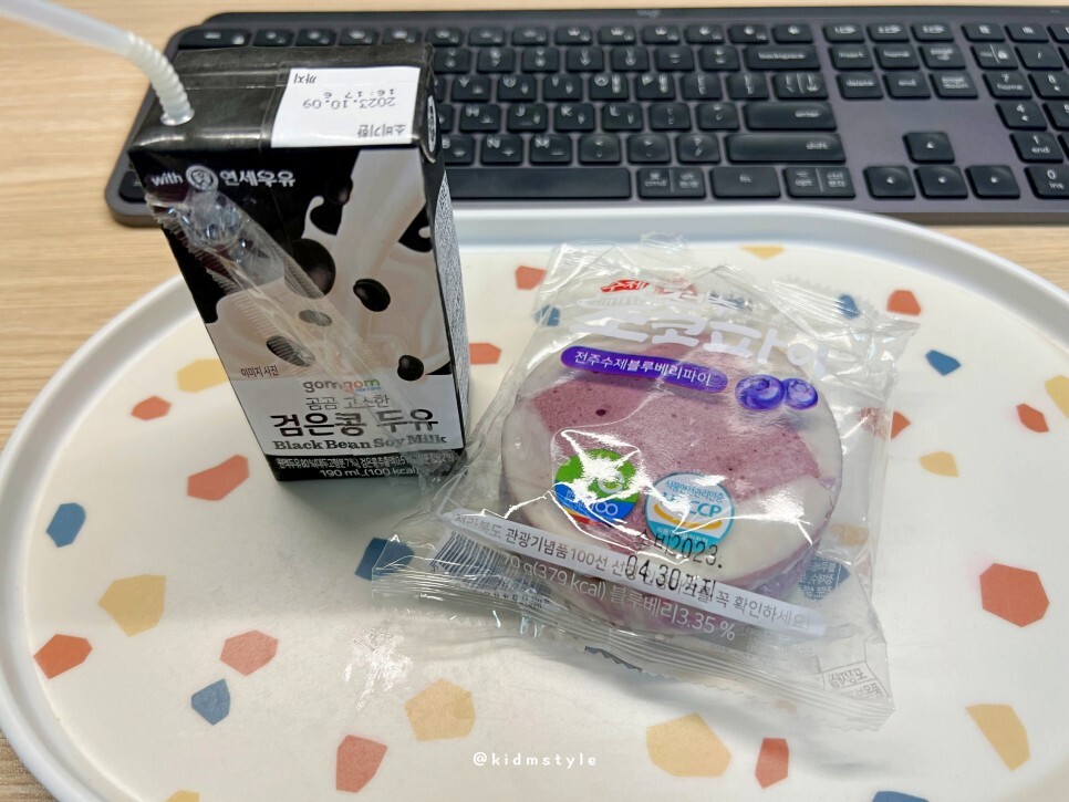 아침 식사로 두유와 함께 맛보면 딱 좋더군요. 기본 맛도 좋은데 과일을 좋아하는 제 취향 상 블루베리파이도 정말 맛있었습니다. 달달한 수제전주초코파이 참 좋아요.