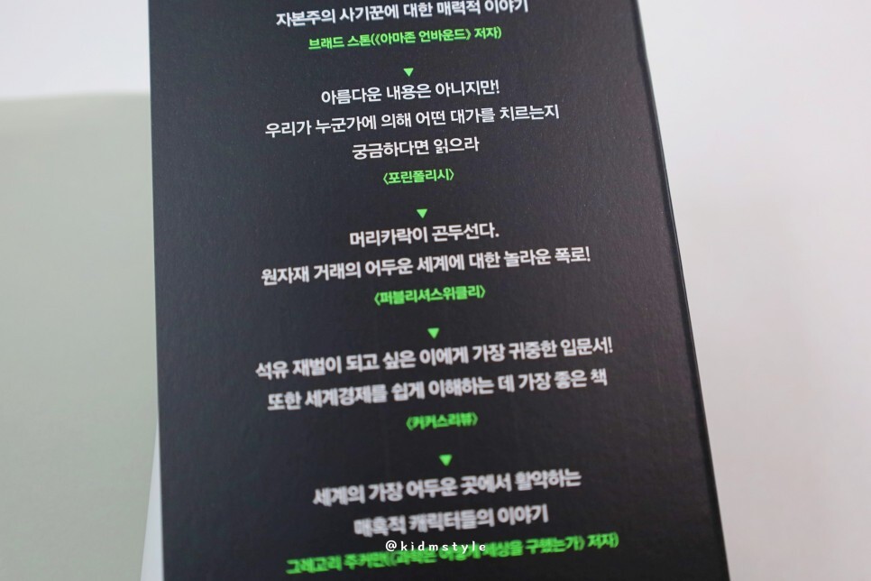 책 뒤를 보니 여러 가지 수식어가 보이는데요. 선데이타임스 '입이 벌어지게 놀랍다', 더 이코노미스트 '매우 흥미롭다', 파이낸셜타임스 '눈을 뗄 수 없다' 등 저도 읽어보니 꽤 흥미롭더군요.