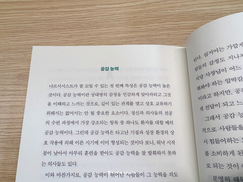 책 내용 하나하나가 참 현실적이면서 재미가 있습니다. 앞서 얘기한 것처럼 우리를 힘들게 하는 사람들 가운데는 자기 자신밖에 모르는 자기애성 성격 장애를 보이는 사람이 있는데요. 이를 나르시시스트라고 하네요.