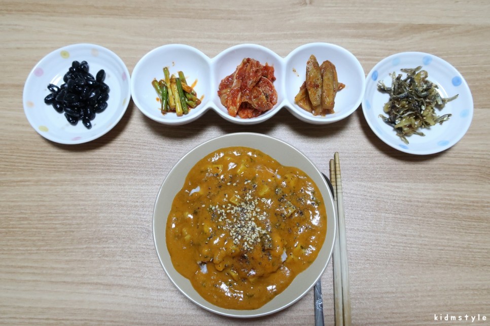 일반 오뚜기 카레 같은 시판 제품들보다는 색깔이 조금 진한 편이다.