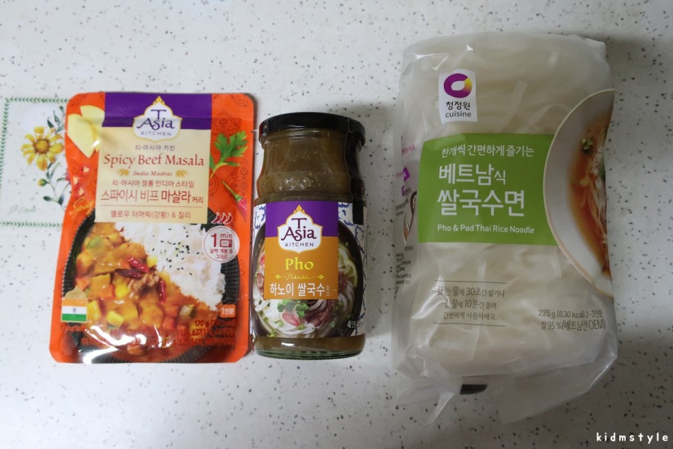 티아시아 커리와 티아시아 포 하노이 쌀국수 소스, 그리고 베트남식 쌀국수 면이다.