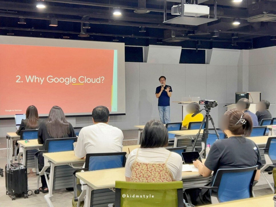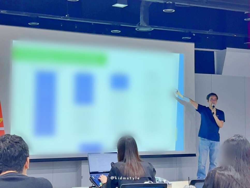 강의 자료는 보안상 블러 처리를 하였고요. 최장준 구글 클라우드 매니저는 이 분야 최고 전문가답게 다양한 예시를 통해 강의를 듣는 이에게 조금 더 집중할 수 있도록 하는 멋진 강의를 펼쳐 보였습니다.
