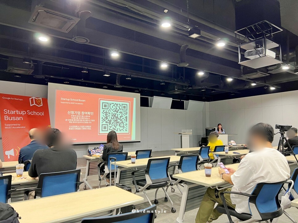 강의 시작 전 구글 스타트업 스쿨 부산 파트너 운영사인 머스트액셀러레이터의 서미경 매니저가 프로그램에 관해 간략한 설명 및 홍보하는 모습을 담아봅니다. 2회 강의를 들어보았지만 물 흐르듯 매끄러운 행사 진행이 돋보이는 운영이었습니다.