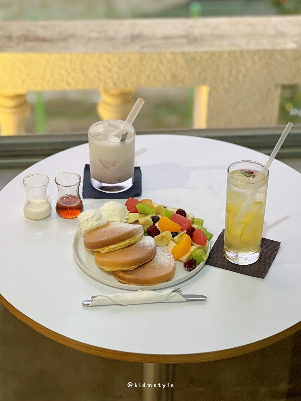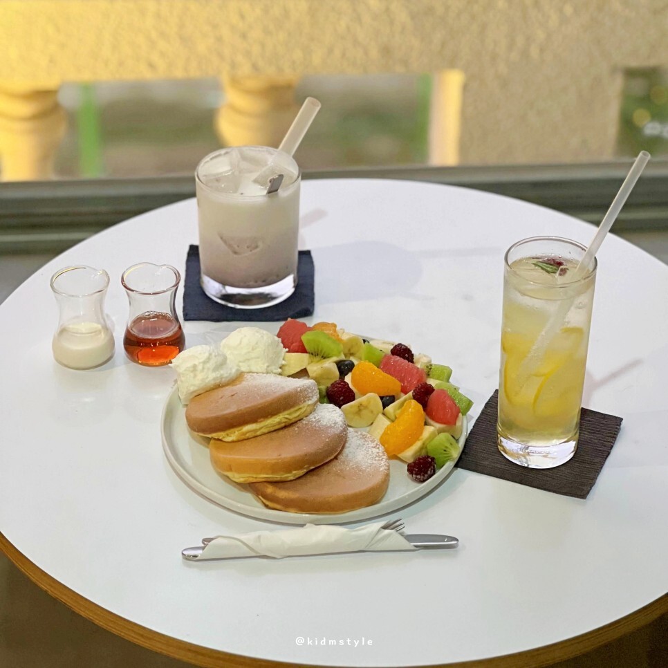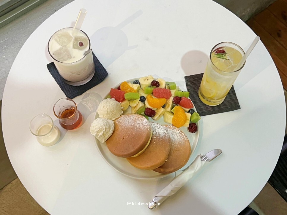 메뉴 고민을 하다가 후르츠 펜케이크, 아즈키라떼, 후르츠에이드를 주문했습니다. 물론 저 혼자 왔으니 혼자 다 먹을 거예요.