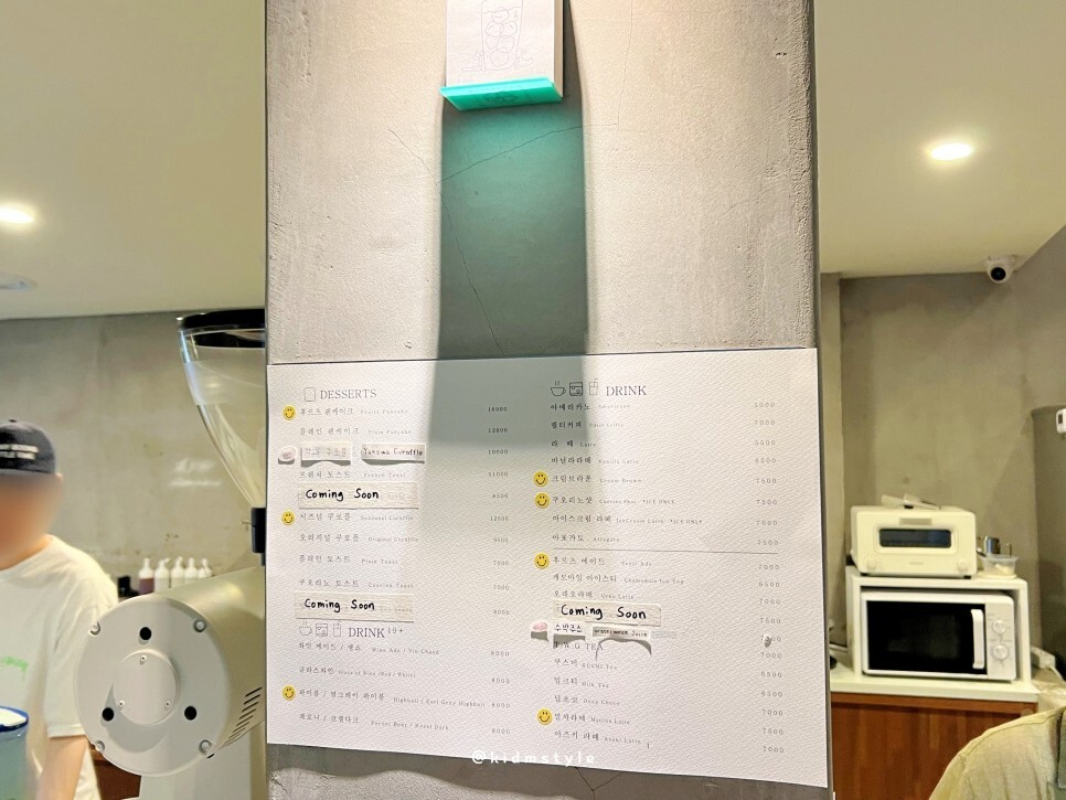 진동벨이 있어서 찾으러 가는 시스템이 아니라 작은 피규어를 테이블 위에 올려놓으면 직원분이 직접 음료 등을 가져다주십니다. 친절한 미소의 직원분이 참 인상적이었어요.