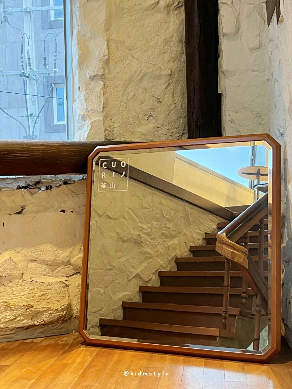 계단 등 곳곳에 정사각형의 거울이 놓여있는데요. 알고 보니 여기가 포토존이더군요. 손님들이 여기서 단체로 사진도 찍고 하는 모습이 흥미로웠습니다. 저는 셀카는 거의 안 찍고 누군가를 항상 찍어주는 입장이었기에 수많은 사진 폴더에 제 사진이 드물긴 해요. 이제는 제 사진을 찍어줄 사람을 만나고 싶다는 생각도 잠깐 해봅니다.