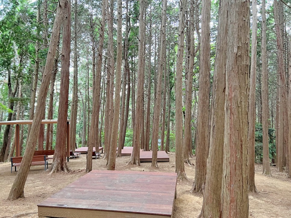 편백나무 숲속에 멋지게 놓여있는 평상을 보니 드러누워서 잠시 하늘을 보고 싶어지네요. 배낭도 아닌 힙색에 물 한 병 들고 와서 아쉽습니다. 간단한 먹거리라도 챙겨와서 피크닉 기분이라도 좀 낼 걸 그랬습니다.