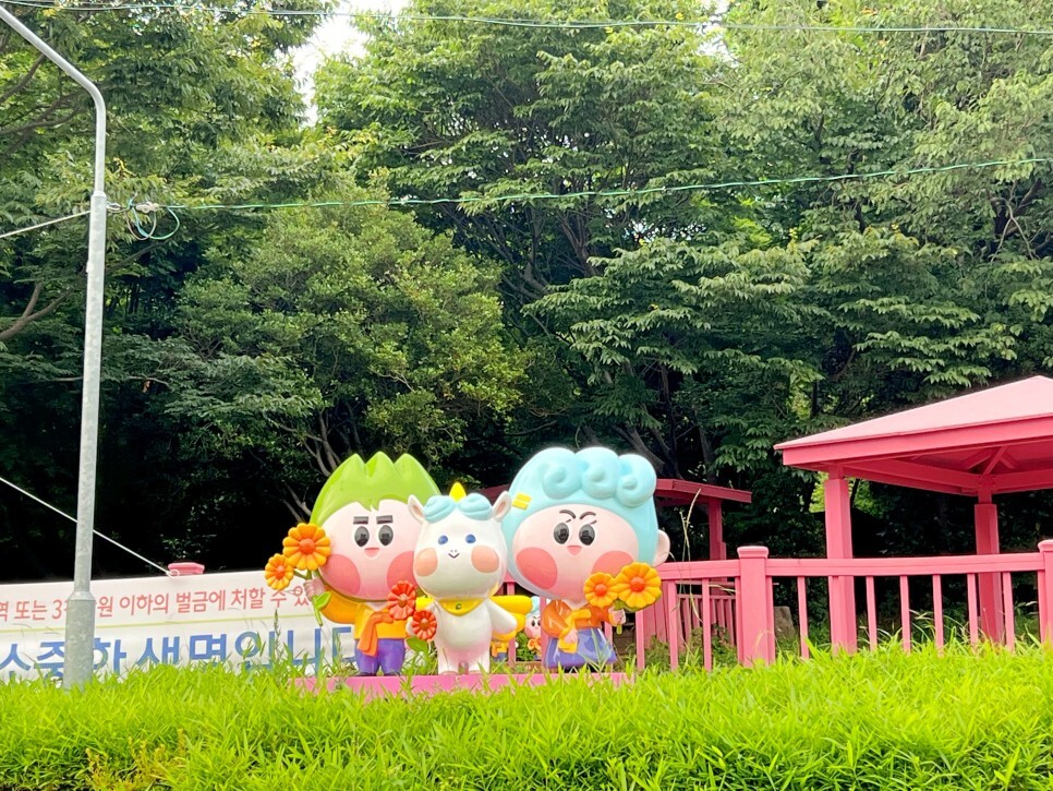꽃마을이에요. 맛있는 식당과 카페가 있는 주말에는 핫플이 되는 곳이에요. 부산 서구청의 sns 소통 캐릭터인 덕이, 천마니, 송이를 보니 너무 반갑습니다. 사실 숲쎈로드 안내판에서도 등장하긴 했어요.