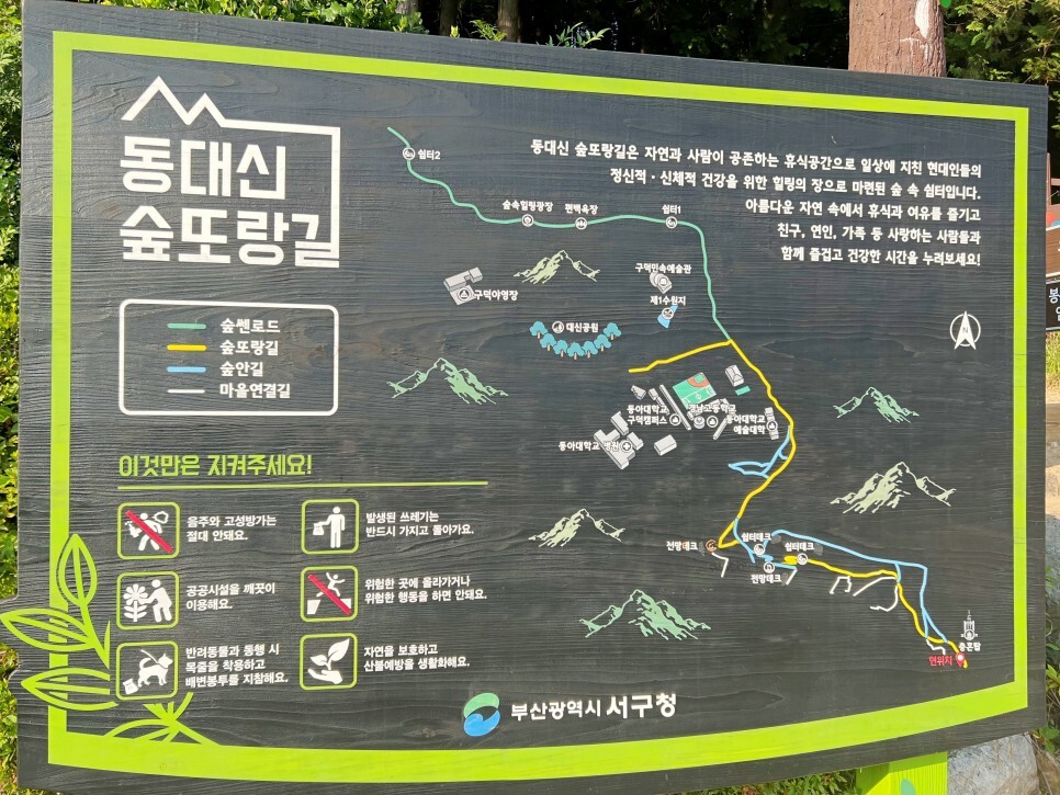 얼마 전에 포스팅했던 서구 동대신동 숲또랑길이 오늘 소개하는 숲쎈로드와 이어져 있습니다. 그래서 출발은 숲또랑길 시작점으로 정해서 걸어보기로 합니다. 숲또랑길에 대한 이야기는 위 글을 참고하시기 바랍니다.