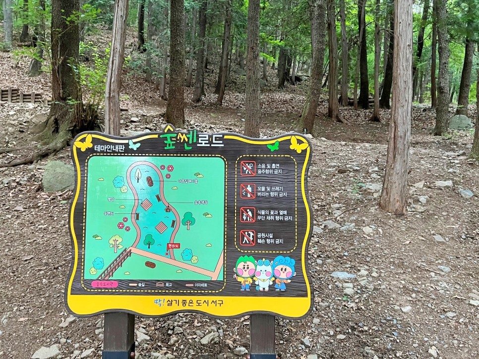 숲쎈로드는 구, 대신공원 매점에서 출발하여 꽃마을 내원정사까지 이어지는 구간입니다. 문화나눔길, 건강키움길, 마음단련길 등 몇 가지 테마로 되어 있는 부분이 흥미롭습니다.