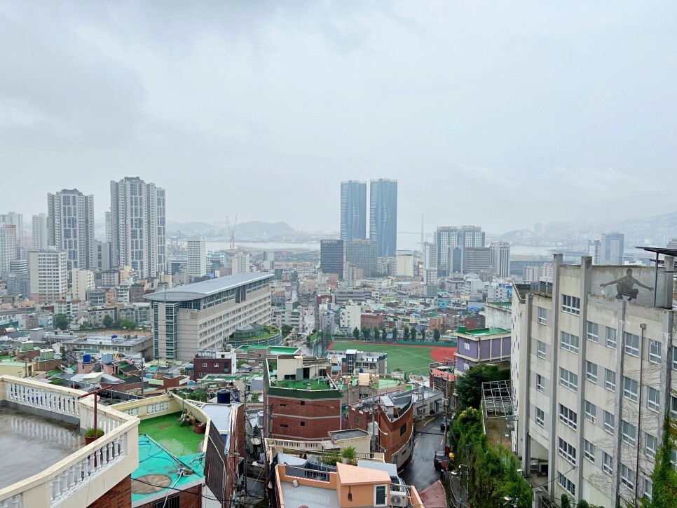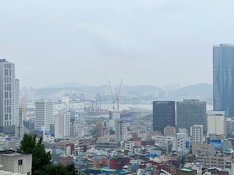 부산항 국제여객터미널, 5부두, 그리고 저 멀리 해운대 장산도 보입니다. 산복도로 어디서든 이런 풍경을 즐길 수 있는 점이 참 매력적이죠.
