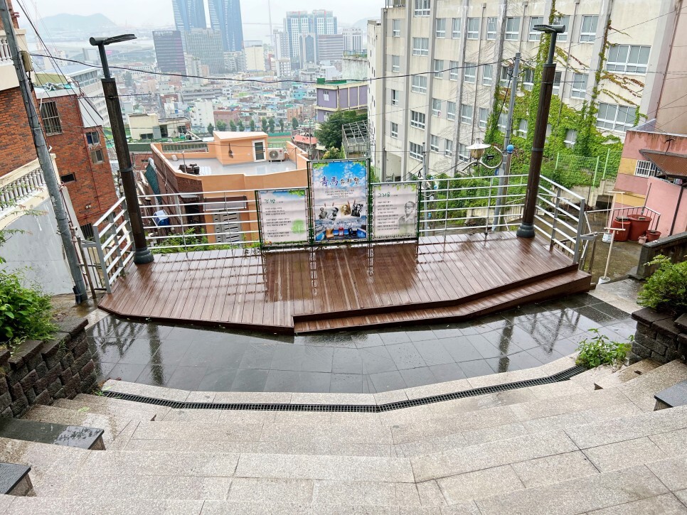 산복도로로 조금만 걷다 보면 멋진 전망대가 보이기 시작합니다. 잘 정비된 보행 길은 늘 인기가 좋습니다.