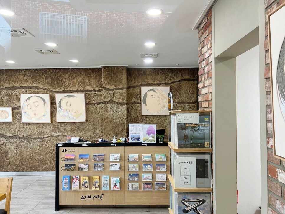 엽서도 팔고 LP도 감상할 수 있는 공간이며 아트갤러리로 전시도 이어집니다.