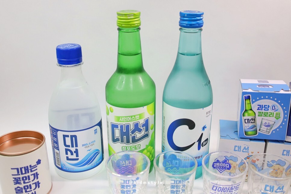 술장고에서 술을 꺼내왔습니다. 대선, 샤인머스캣 대선, 시원블루입니다.