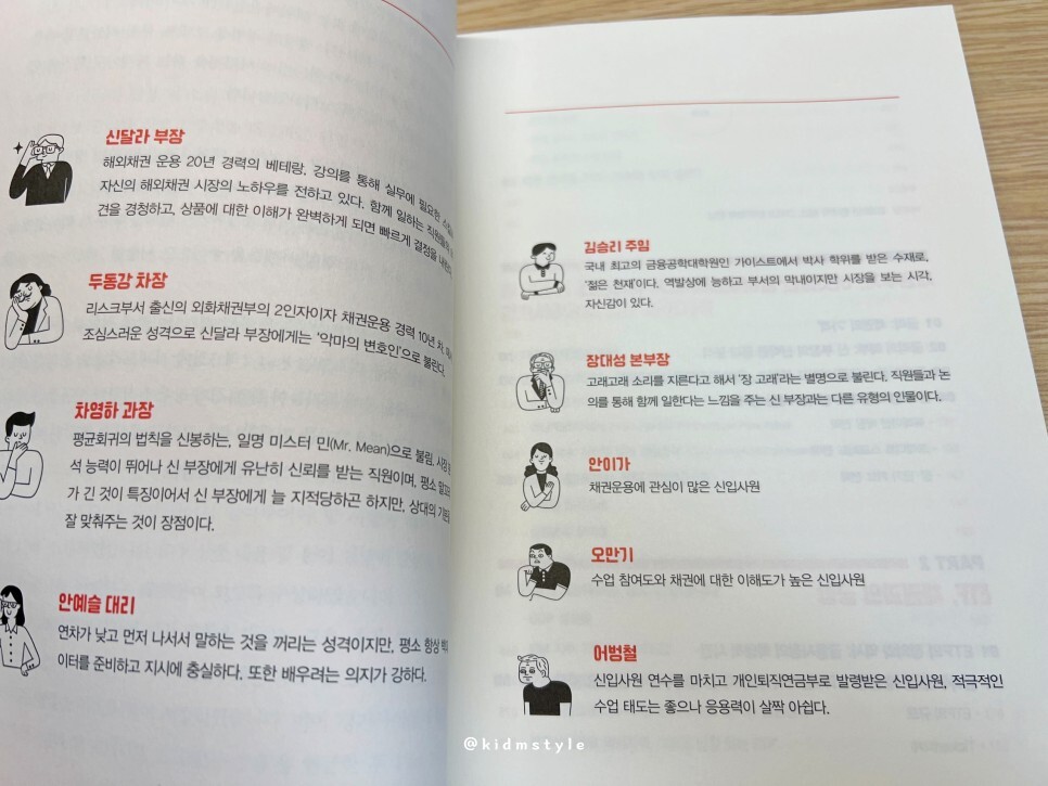 책 내용에는 가상 회사의 다양한 직원들이 등장해서 이야기를 풀어나가는 방식으로 흘러가는데요.