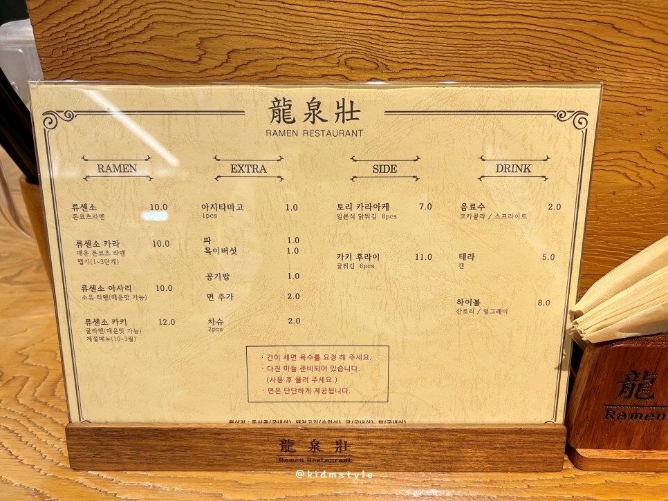 류센소는 해운대에 본점이 있는데요. 인기가 많아서 어느덧 전국구 체인으로 발전을 했습니다. 저는 여기를 좋아해요. 주차가 편하고 동네라서 접근성이 너무 좋거든요. 남포동에 새로 생긴 다른 라멘집들도 하나씩 소개해 볼 생각입니다.