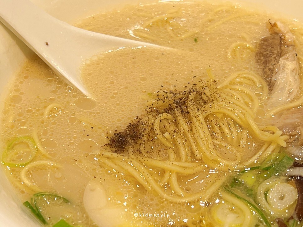 국물은 진하게 우린 돈코츠 국물이라 진해요. 일본 현지보다는 덜 짜지만 짠 국물에 익숙하지 않은 분들은 주문 시 제공되는 그대로 드시는 걸 추천드려요.