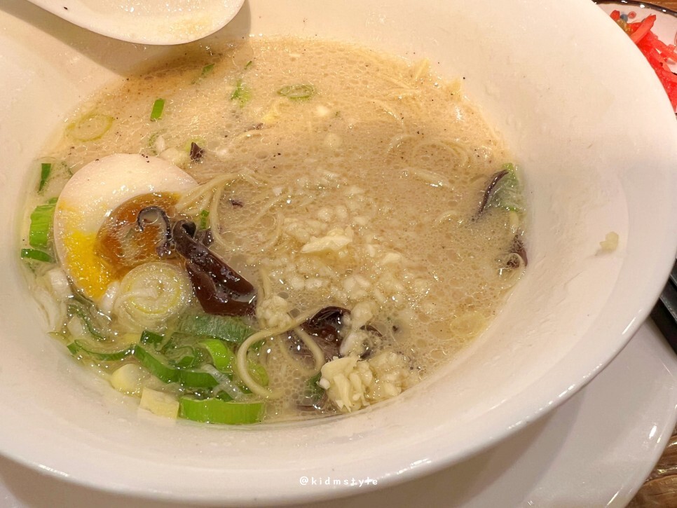 깔끔하게 비웠습니다. 일본 현지에서는 라멘을 먹을 때 완식 문화가 보편적인데요. 특히 돈코츠가 유명한 하카타 지방에 가서 라멘을 먹고 나면 그릇 바닥에 완식이라고 한자가 적힌 것을 많이 볼 수 있어요. 짠 음식을 매일 먹는 게 아니니 라멘 먹을 때만큼은 싹 비우는 것 같습니다. 돼지국밥 먹을 때도 다들 그러시잖아요.