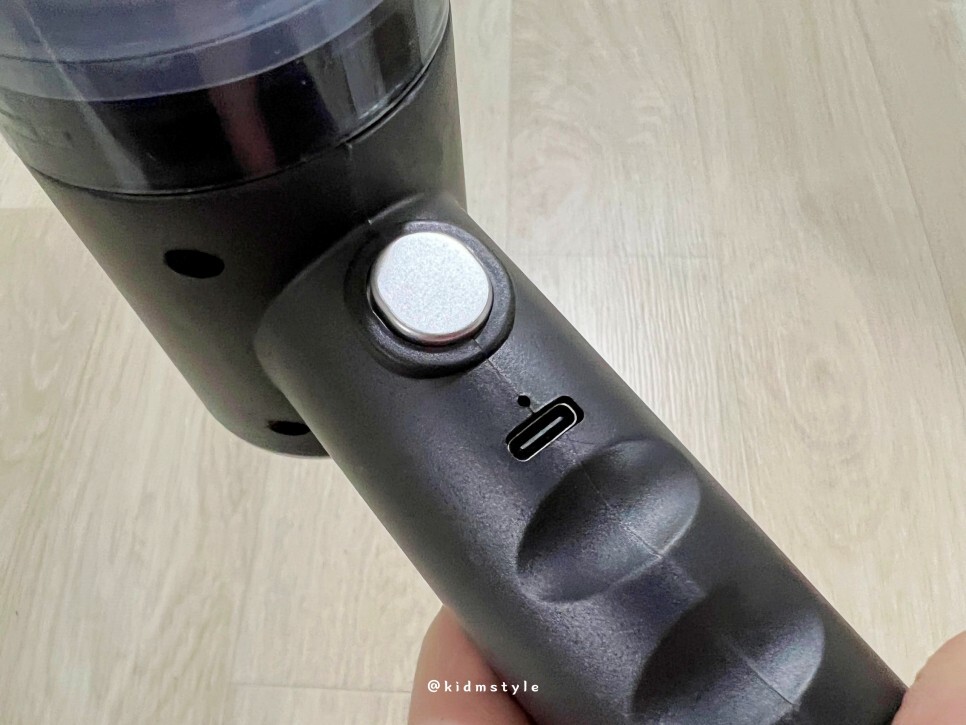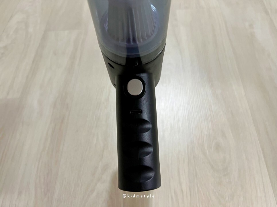 전원 스위치는 손잡이 앞쪽에 있고요.